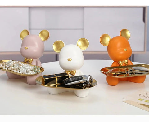 Our adorable Bernard Buddy Bear Tray offers the perfect solution for displaying your small items.  The gold glossy accents add a stylish element to this fun piece. Choose between three colors for the perfect accent to your space.  Keep it neutral with white or add a pop of color with the orange or pink Buddy Bear.