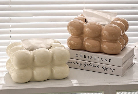 Hide your tissues in style with our Bubble Love Tissue Box. This unique decor piece features a smooth bubble shaped surface for a cute take on a traditional item.