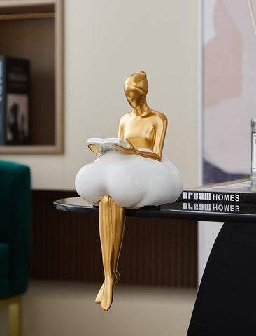 Get lost in your thoughts with our Nebula Muse “Cloud Woman” Statue. Featuring a glossy golden woman sitting in a detailed cloud, this beautiful and inventive sculpture will bring a dreamy atmosphere to any room.  It’s sure to become the centerpiece you never knew you needed!