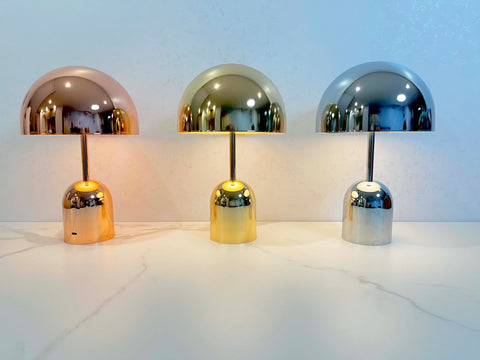 The Vivian Metal Mushroom Rechargeable Lamp provides sleek, modern décor with its polished chrome finish. Its portability and long-lasting rechargeable battery make it an ideal choice for any space. Create the perfect ambiance with ease.